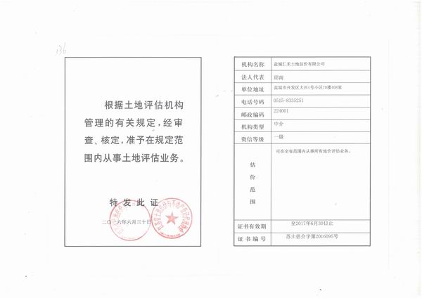 • 土地評估資質證書